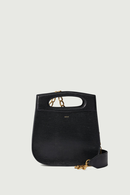 A bag crafted in a single large piece of leather, a silk square available in a palette of colors, an iconic jacket in Harris Tweed, and a range of long socks in mercerized cotton thread.