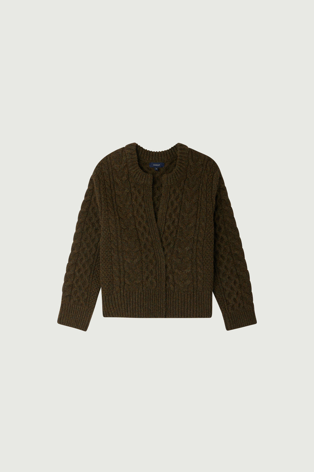 Cable knit short cardigan heathered khaki