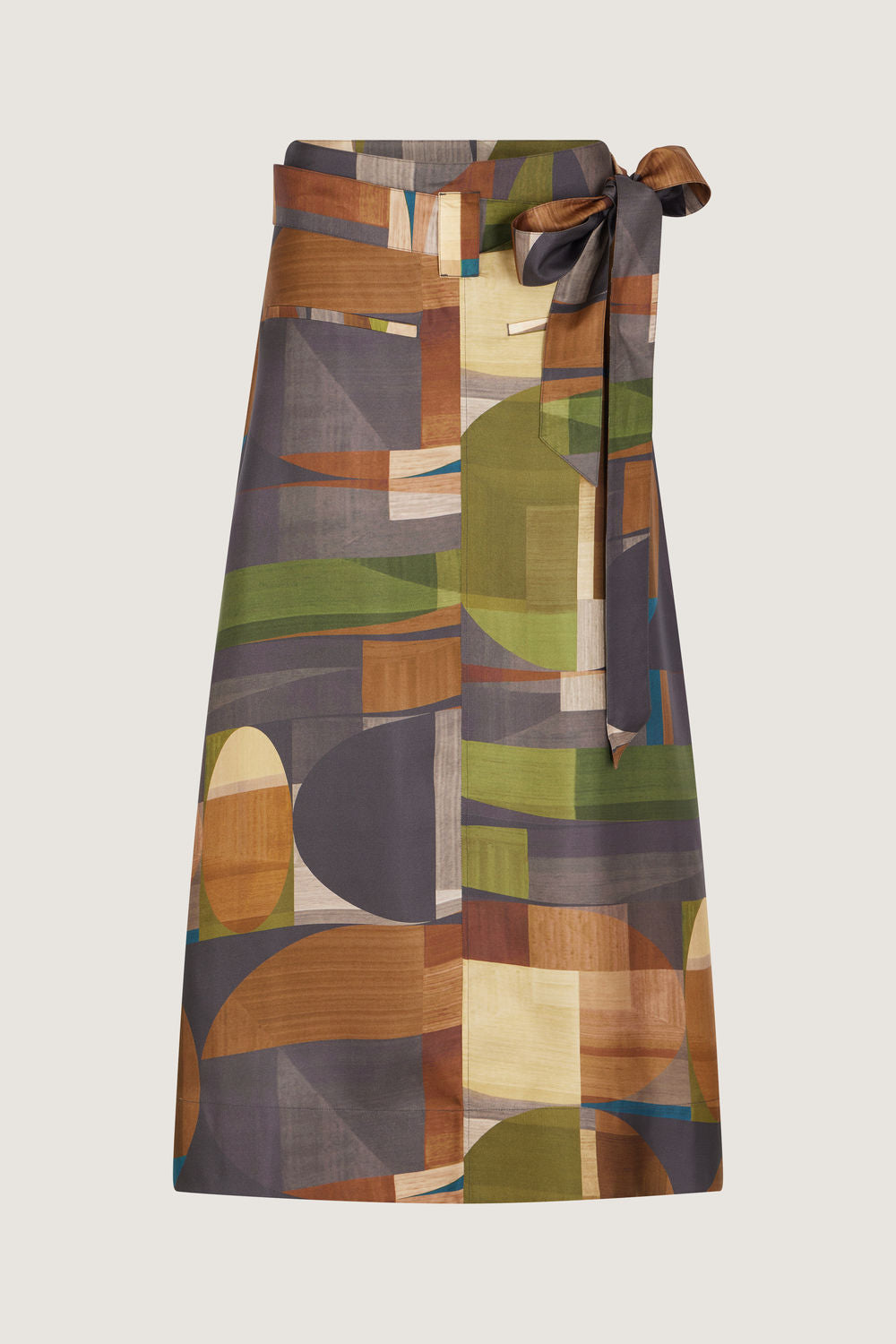 Long skirt in printed silk twill green/brown