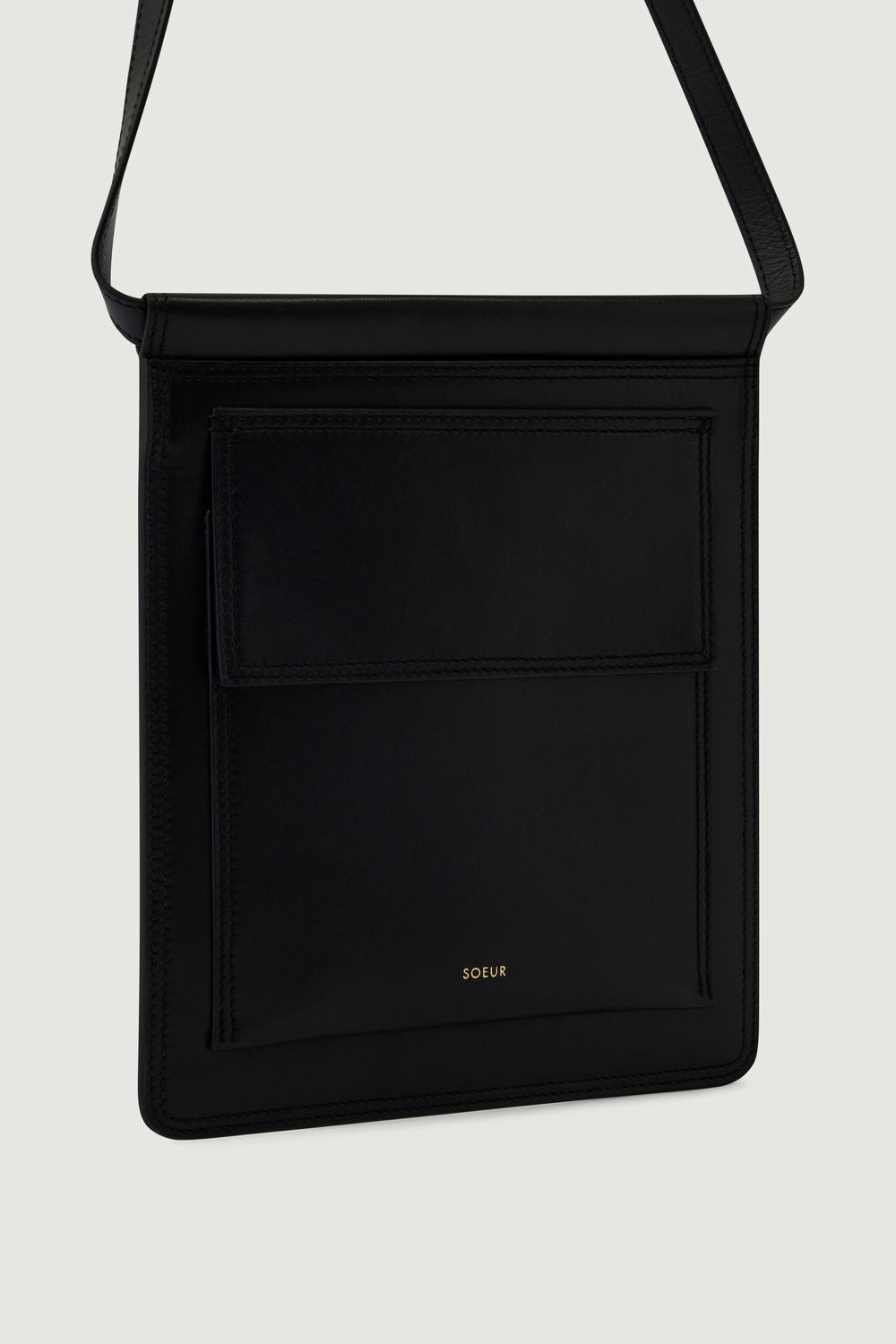- Front flat pocket, 19 cm high, 17.5 cm wide.