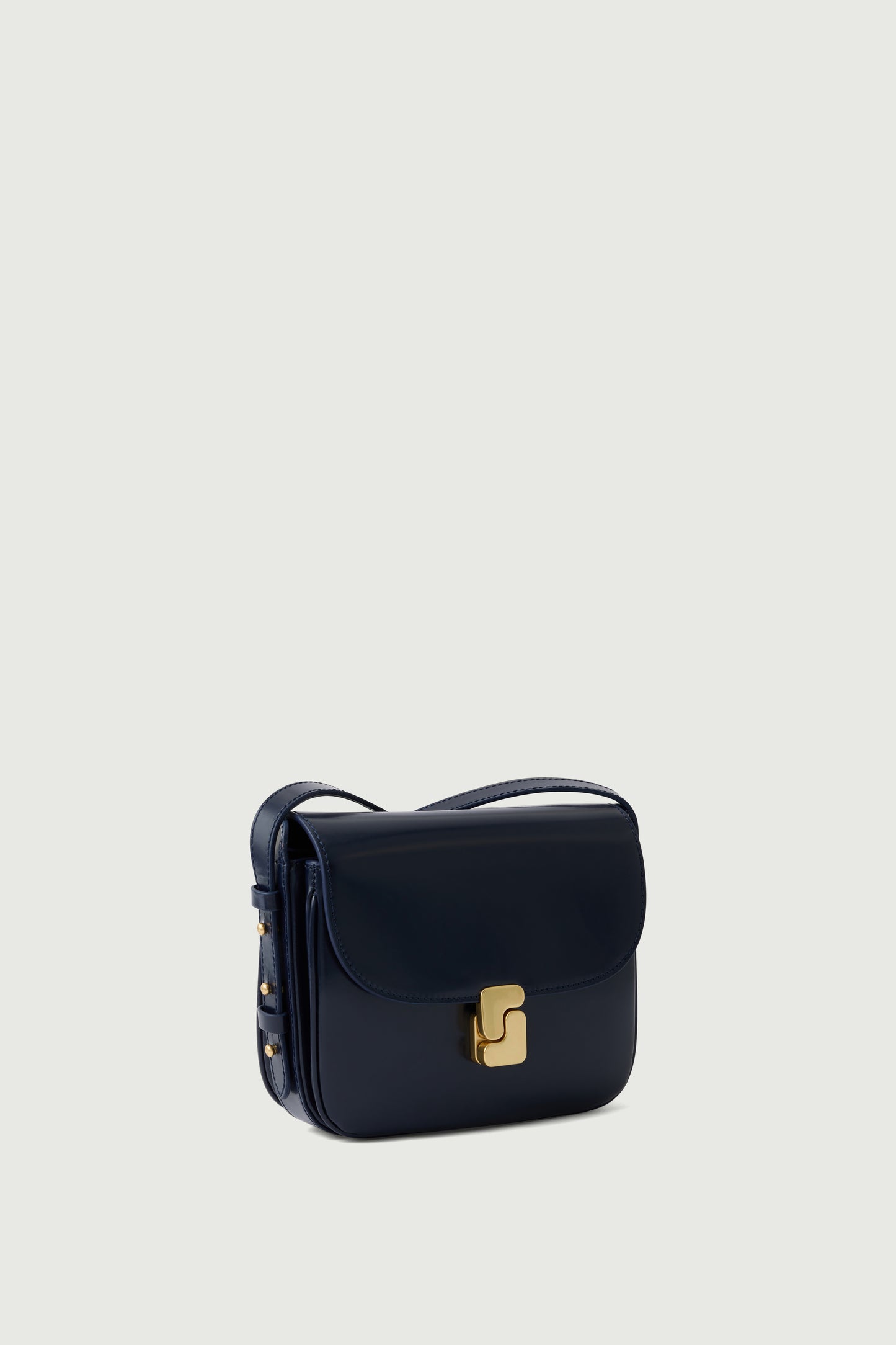 bellissima mini bag Blue glazed leather bag with "S" monogram